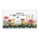 Illustration d'aquarelle fantaisiste représentant un clavier de piano entrelacé de fleurs sauvages rouges, jaunes et blancs éclatants. Les papillons flottent gracieusement au-dessus, accompagnés de notes musicales flottantes, tandis qu'un petit oiseau perche au milieu des fleurs. Des éclaboussures douces de couleurs jaillissent du piano, se mélangeant à un arrière - plan rêveur et artistique qui capte l'harmonie entre la musique et la nature.