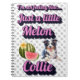 This hilarious notebook features a watermelon and a collie, with the text "I"m not feeling blue, just a little melon collie." Perfect for everyone with a sense of humour and who likes dogs.