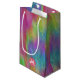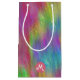 Features an abstract melted glass design in rainbow colours. Personalize with an initial.
