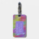 Features an abstract melted faux glass design in rainbow colours. Personalize with an initial on the front, and a name and address on the back.