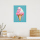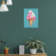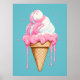 A vibrant and playful digital illustration of a delicious ice cream cone topped with fluffy white scoops and dripping pink syrup. The background is a cool turquoise, enhancing the contrast of the warm waffle cone and the creamy, melting goodness. Perfect for summer vibes and dessert lovers!