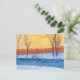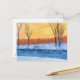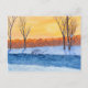 Melting Snow - art postcard with a colourful orange winter sunset from an acrylic painting by M Rogers.