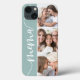 Celebrate her grandma status with this special phone case featuring three treasured photos of her granddaughter, grandson, or grandchildren. The nickname "Mema" appears along the left side in elegant calligraphy script lettering for a unique personal touch.