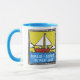 Membre d'équipage de yacht voilier Mug. Image graphique brillante et audacieuse pour les amateurs de voile. Personnalisez avec votre propre nom et nom de bateau. Image et texte répétés de part et d'autre de la tasse.