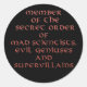 Membre des stickers Secret Order. Achetez ici les autocollants officiels de l'Ordre Secret de Mad Scientist, Maléfiques Genius et Supervillains! Disponibles à tous les membres de l'Ordre Secret, ces autocollants sont parfaits pour coller sur tous vos instruments du mal! Stickers chaque esprit tordu convoitera avec l'expression "Membre de l'Ordre Secret des Scientifiques Mad, Géniens Maux et Supervilains" en rouge, lettres sinistres emblazées sur un arrière - plan noir! Des feuilles d'autocollants maléfiques, cool, en papier résistant aux rayures, faciles à peler et à coller n'importe où, ces autocollants officiels de l'Ordre Secret des Scientifiques Mad, Géniens du Mal et Supervillains sont sûrs de satisfaire même les plus particuliers et le choix des intellectes du mal! Achetez vos autocollants officiels très pratiques Membre de l'Ordre Secret de l'Ordre Secret des Scientifiques Mad, Géniens Maux et Superméchants aujourd'hui et assurez-vous de les coller sur tous vos dispositifs de domination du monde et plans secrets pendant que vous tentez la conquête du monde! A la recherche de plus de cadeaux pour le génie perspicace mal compris et serait-il le chef du monde? N’oubliez pas de jeter un coup d’oeil aux autres cadeaux maléfiques de The Secret Order, des t-shirts aux tasses, des porte - clés aux cartes de visite et bien plus encore, qu’aucun vêtement secret ne devrait être sans. L'Ordre Secret des Scientifiques Mad, Géniens Maux et Supervilains, vous amenant la domination du monde à travers la science du mal! Mwahahahahahahahaha ! Ce message est endossé par le membre de l'Ordre Secret No 1.