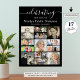 Celebrate the life of your departed loved one with this photo remembrance tribute poster print utilizing this easy-to-upload photo collage template with 17 square and rectangle pictures to display at a funeral memorial service, wake, visitation or Celebration of Life event. The design features modern fancy calligraphy script typography for the title CELEBRATING THE LIFE OF NAME and dates. OPTIONS: The sample is shown in a 20x28" size on Value Paper (Matte); other standard and custom print sizes and paper quality, Instant Digital Download file for printing locally or transferring the design to a foam board, banner, canvas or other product options are available on the ordering page. RESIZING TIP: Choose Custom Size for even borders by changing the height and width proportionately AFTER clicking the UNLOCK icon (looks like a chain link). ASSISTANCE: For help with design modification or personalization, colour change, resizing or transferring the design, contact the designer BEFORE ORDERING via the Zazzle Chat MESSAGE tab or email makeitaboutyoustore@gmail.com.