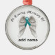 Make your own custom Christmas ornament gift. Design a one of a kind custome gift for a gift. Add a name to this memorial Christmas Ornament to hang on the Christmas tree or in a window.Create an unique customized Personalized Christmas present,Hanukkah gift for someone you know who has lost a loved one to Ovarian cancer. This is a set of wings with a teal awarenes ribbon.You can chose the style of the ornament too.