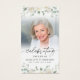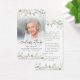 Celebrate the life of your loved one with this custom personalized prayer card featuring one cherished photo, the title CELEBRATING THE LIFE OF NAME and dates and an editable heartfelt remembrance message you can change to your custom text, a meaningful poem, quote or bible verse accented with soft watercolor white flowers and greenery. With its simple yet classic design and elegant script typography, it makes a thoughtful keepsake to share at a Celebration of Life, funeral, memorial service, visitation or wake and offers comfort and a lasting tribute for family and friends. Its small and portable size of 3.5x2" (wallet-sized) makes it convenient for loved ones to carry it with them as a reminder of your loved one’s life and spirit. Personalization makes each card unique.