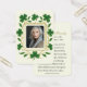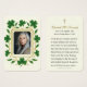 Un décor de mémorial catholique magnifiquement révéré, avec des shamrocks dorés et des broderies d'inspiration celtique sur un arrière - plan vert émeraude profond. Le devant contient une photo de votre chère défunte encadrée dans une frontière brodée gracieuse, tandis que le dos offre une prière catholique traditionnelle invoquant l'intercession de la Sainte Vierge Marie et des Saints. Un souvenir sacré pour honorer une vie de grâce et de foi, parfait pour partager à la messe funéraire ou commémorative.