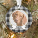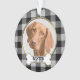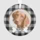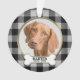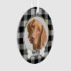 Un magnifique ornement de souvenir photo avec un classique noir et blanc de buffle chèque motif et or accents, vous personnalisez avec votre photo préférée de votre animal de compagnie, leur nom et les années de vie passées avec votre famille.