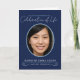 Celebration of life memorial service oval photo program in dark navy blue, sky blue and white. Personalize with the name and a photo of your loved one in an oval frame on the front plus your inside your service and obituary details with two further photos and a poem and with thanks on the back. Photo flanked by two sweeping hearts. Other colour options are available or can be created on request. Original art and design by www.mylittleeden.com