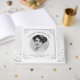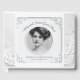 A simple, elegant, classic white frame design for a classy, personalized memorial service or other commemorative events. Paper cutout style with matching roses and pearl illustration at the back. Replace the sample portrait photo and text with your own.
