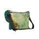 The bag is a little bit too large. It very roomy and is durable enough for a laptop and/or other electronic devices. The straps are big and can be adjusted to wear cross body. The artwork and the colors are what initially got my attention. It's even more beautiful in person.