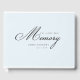 Customer specific, memorial, elegant, simpel "In Loving memory" dark-grey handwriting font, lieght-blue funeral guest book. Availible in different colours and sizes.