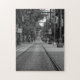 A black and white shot of the trolley tracks in Memphis, Tennessee.