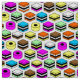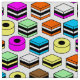 A colorful seamless repeat pattern made up of stylised geometric liquorice allsorts shapes inspired by Memphis patterns and Pop Art. The artwork for this pattern is vector based so can be made larger or smaller without loss of quality.