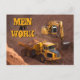 This cool postcard features a stunning photo of a yellow digger tractor and a dump truck on a construction site with the customizable message, "Men at Work."