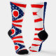 Crafted with meticulous attention to detail, these socks celebrate Ohio's rich heritage and cultural significance. The flag design proudly showcases a burgee shape with red and white stripes and a blue triangle filled with 17 stars, representing Ohio's admission as the 17th state.