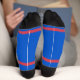 These socks proudly display the flag of Guam, known for its symbolic design representing the Chamorro culture and heritage. The flag features a dark blue field with a narrow red border and a central red stripe, symbolizing courage and resilience. In the centre of the flag is a prominent white shape known as a "flying proa," a traditional sailing canoe used by the Chamorro people.