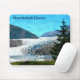 A view of the Mendenhall Glacier just outside of Juneau, Alaska. Icebergs float in the meltwater lake at the glacier's face.