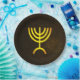 A brown and gold digital rendering of the Jewish seven-branched menorah (Hebrew: מְנוֹרָה). The seven-branched menorah, used in the portable sanctuary set up by Moses in the wilderness and later in the Temple in Jerusalem, has been a symbol of Judaism since ancient times and is the emblem on the coat of arms of the modern state of Israel. The kohanim lit the menorah in the Sanctuary every evening and cleaned it out every morning, replacing the wicks and putting fresh olive oil into the cups. It has been said that the menorah is a symbol of the nation of Israel and our mission to be "a light unto the nations." (Isaiah 42:6). Our sages emphasize that light is not a violent force; Israel is to accomplish its mission by setting an example, not by using force. This idea is highlighted in the vision in Zechariah 4:1-6. Zechariah sees a menorah, and G-d explains: "Not by might, nor by power, but by My spirit." G-d revealed the design for the menorah to Moses as follows (Exodus 25:31-40): 31 And you must make a lampstand of pure gold. Of hammered work the lampstand is to be made. Its base, its branches, its cups, its knobs and its blossoms are to proceed out from it. 32 And six branches are running out from its sides, three branches of the lampstand from its one side and three branches of the lampstand from its other side. 33 Three cups shaped like flowers of almond are on the one set of branches, with knobs and blossoms alternating, and three cups shaped like flowers of almond on the other set of branches, with knobs and blossoms alternating. This is the way it is with the six branches running out from the lampstand. 34 And on the lampstand are four cups shaped like flowers of almond, with its knobs and its blossoms alternating. 35 And the knob under two branches is out of it and the knob under the two other branches is out of it and the knob under two more branches is out of it, for the six branches running out from the lampstand. 36 Their knobs and their branches are to proceed out from it. All of it is one piece of hammered work, of pure gold. 37 And you must make seven lamps for it; and the lamps must be lit up, and they must shine upon the area in front of it. 38 And its snuffers and its fire holders are of pure gold. 39 Of a talent of pure gold he should make it with all these utensils of it. 40 And see that you make them after their pern that was shown to you in the mountain. Until 2009, the earliest preserved representation of the menorah of the Temple was depicted in a frieze on the Arch of Titus, commemorating his triumphal parade in Rome following the destruction of Jerusalem in the year 70. In 2009, however, the ruins of a synagogue with pottery dating from before the destruction of the Second Temple were dised under land in Magdala owned by the Legionaries of Christ, who had intended to construct a centre for women's studies. Inside that synagogue's ruins was discovered a rectangular stone, which had on its surface, among other ornate carvings, a depiction of the seven-branched menorah differing markedly from the depiction on the Arch of Titus, probably carved by an eyewitness to the actual menorah present at the time in the Temple at Jerusalem. This menorah has arms which are polygonal, not rounded, and the base is not graduated but triangular. Representations of the seven branched artifact have been found on tombs and monuments dating from the 1st century as a frequently used symbol of Judaism and the Jewish people. Contrary to some modern designs, the ancient menorah did not contain anything resembling seven candles as they did not exist then.
