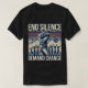 The "End Silence, Demand Change" design for the United States Gymnastics scandal features a raised fist holding a broken medal, symbolizing the fight for justice and accountability. Below, a group of gymnasts stands in unity, representing the strength and resilience of survivors demanding change.