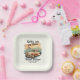 Celebrate a milestone with our "Rollin’ into my fifties" plates, featuring a classic car cruising past a stunning retro desert mountains sunset. The nostalgic design and retro font capture the essence of a new era of adventures ahead. Customizable details in a refined serif font let you add a personal touch to every aspect. Perfect for family members planning an unforgettable 50th birthday party. Order today and get ready to cruise on over to a memorable event!