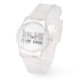 I only have one complaint. I ordered the watch with clear case and strap, and what was sent was white case and strap. I'm going to keep it because 1) it looks very nice in white, and 2) it would take too long to get a replacement made and sent in time for my occasion. Aside from the mix up with the color, the watch does look very good in white. The purple dial is actually sparkly which did not show in the online images. That was a nice surprise. If you like Swatch watches this is very similar to those. It's 33.6mm in diameter, 10.5mm thick, and 40.6mm lug to lug. Stainless steel case back says 3ATM/30m WR, so no swimming or showering or submerging this one. If you like Woodstock, this is a great choice.