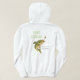 Men's basic pullover hoodie sweatshirt has a large print of a fish biting a hook along with the caption "Gone Fishing" "If Only in My Mind" on the back. Shown in White. Customize further or buy as is.