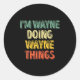 Mens Im Wayne Doing Wayne Things Funny Iz Classic Round Sticker