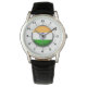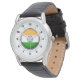 Men's Crown Protector Black Leather Strap Watch India Flag