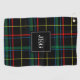 Men's Monogrammed Modern Black Green Plaid Check Golf Towel