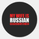 Mens My Wife Is Russian Nothing Scares Me! Funny H Classic Round Sticker