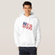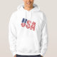Men's basic pullover hoodie is shown in white with a patriotic USA Flag graphic print,perfect for July 4th holiday or any other patriotic moment, this hoodie is made of quality materials and craftsmanship and is available in more colours. Customize to your size, colours, add text to your liking; Or buy as is.