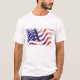 This patriotic men's shirt is shown in White, this t-shirt has short sleeves and a crew neck with a large graphic of the U.S. Flag.