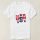 Men's popular t-shirt is shown in white with a July 4th USA stars graphic print, perfect for July 4th holiday.