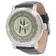 Elegant and classy, clean and simple customized monogrammed watches for the special man on your gift list. Classic but modern style red and black hash marks on military olive camo green and khaki face. Bold monogram initials in art deco Gatsby style for the sophisticated gentlemen -- click Customize It to change the font sizes, style or colours. Novelty monogram watches make a perfect personalized gift for birthdays, anniversary, graduation, retirement, wedding party attendants, holidays, and other milestone celebrations.