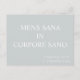 A motivational postcard featuring the Latin quote ‘mens sana in corpore sano’ which translates to ‘a healthy mind in a healthy body’. The phrase has its origins in Ancient Greece and was later used by the Roman poet Juvenal. The modern world interpretation of the phrase focusses on the importance of balance and harmony between the mind and body. The lettering has a classical feel evoking Roman public inscriptions and the English translation is in a contrasting font. The typographic postcard features crisp white text on a grey background.