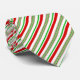 This men's dress tie is shown in a holiday striped print design in colours of green and red.