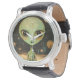 Men's watch with a UFO alien watch face.