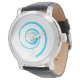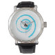 Men's Vintage Black Leather Strap Watch with Light Blue Twirl.