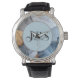 This vintage watch is shown with a Jesus is the way print and is shown in an ink abstract print in a multi colours blue and grey.