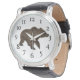 Men's Watch with Black Vintage Leather Band and Bear Design