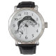 Men's Watch with Black Vintage Leather Band and Fish Design