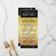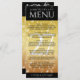 Ajoutez de la sophistication aux célébrations du 27e anniversaire du mariage musical avec ce menu du dîner, qui comprend des lettres élégantes et des confettis de notes musicales sur feuille d'or et arrière - plans noirs. Customisez avec le nom du couple, la date du mariage, les détails du lieu, les menus et les messages de félicitations. Design © W.H. Sim. Voir plus sur zazzle.com/expressionsoccasions
