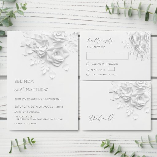 White Faux Paper Cut Roses WeddingConçu par Nina Baydur