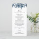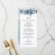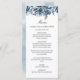 Menu au design floral avec fleurs bleu indigo. Les couleurs florales bleu cool en font un menu adapté pour les mariages d'hiver, les fêtes d'hiver, les baby showers d'hiver et plus encore.