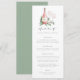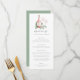 Conçus pour correspondre à nos invitations de dégustation de vin À l'amour Toast pour les douches de mariée, les dîners de répétition et les soirées de fiançailles, les menus présentent une bouteille de vin rosé inscrite avec les initiales du couple sur un lit de feuillage aquarelle vert sauge doux. Personnalisez avec les détails de votre menu d'événement en lettrage gris classique.