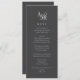 Cette carte de menu mariage classique gris foncé académique monogramme de la Collection Andrea est parfaite pour un mariage moderne. Le design foncé et élégant présente un monogramme de script élégant en gris et blanc avec une sensation d'humour unique. Ce menu peut être utilisé pour une réception de mariage, un dîner de répétition ou tout événement.