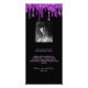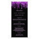 Carte menu fête d'anniversaire. Personnalisez et ajoutez un nom, un âge, une date et le menu. Un arrière - plan noir chic, décoré avec des touches de parties scintillant violet. Lettres violettes. Retour : ajoutez une photo de la fille d'anniversaire, des faits amusants et des noms.